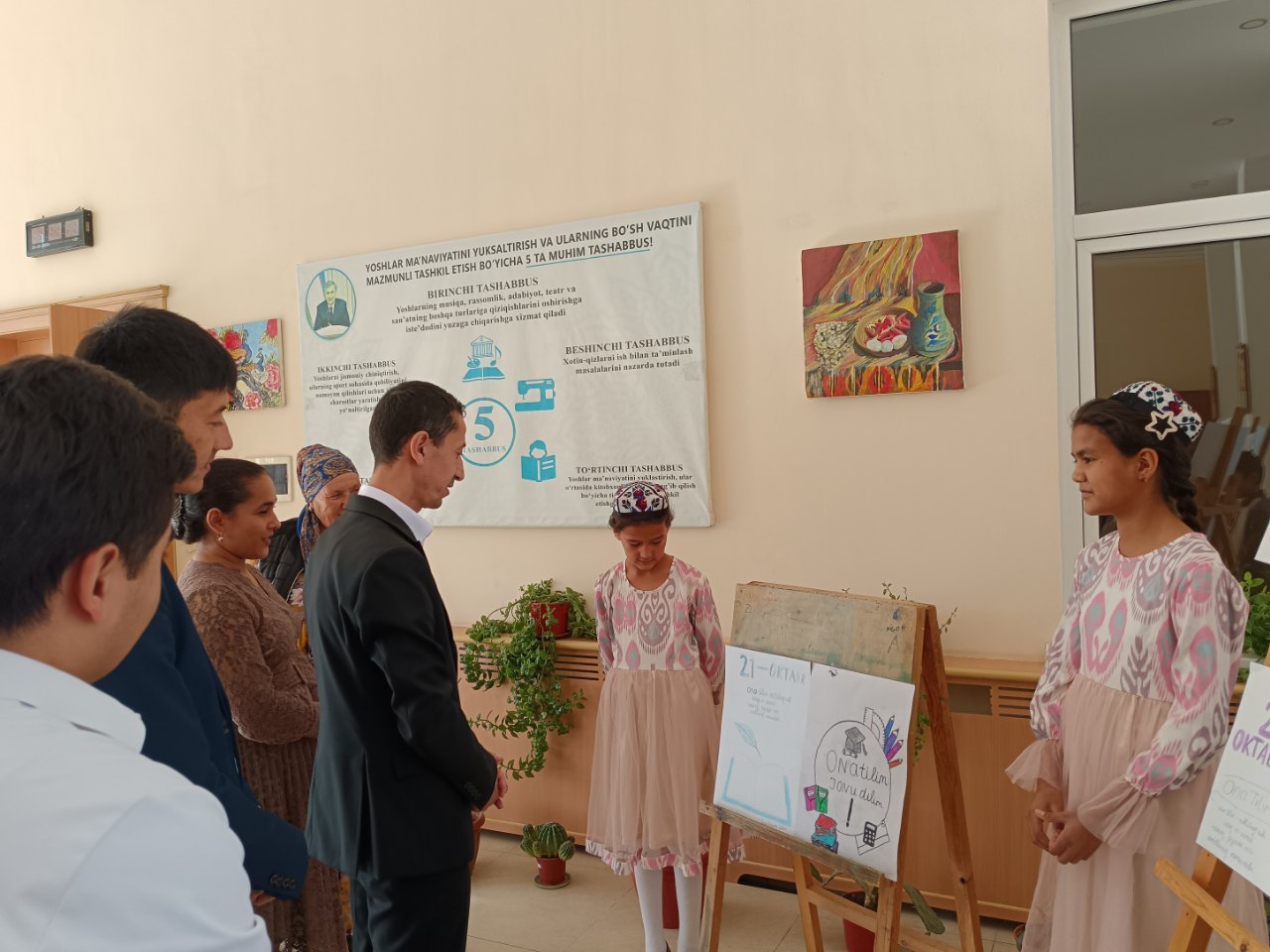tadbirlar, taniqli olimlar, til sohasining mutaxassislari, davlat va jamoat arboblari,yozuvchi va shoirlar bilan uchrashuvlar, ommaviy diktant kabi aksiyalar hamda bayramga bag‘ishlangan boshqa tadbirlarni o‘tkazish bo‘yicha 2025-yil yil 16-oktabr kuni Urganch tuman 18-son bolalar musiqa va san'at maktabida Tasviriy va amaliy san'at bo‘limi o‘quvchilarining "Ona tilim-jonu dilim" shiori ostida ijodiy ishlar ko‘rgazmasi o‘tkazildi. Telegram