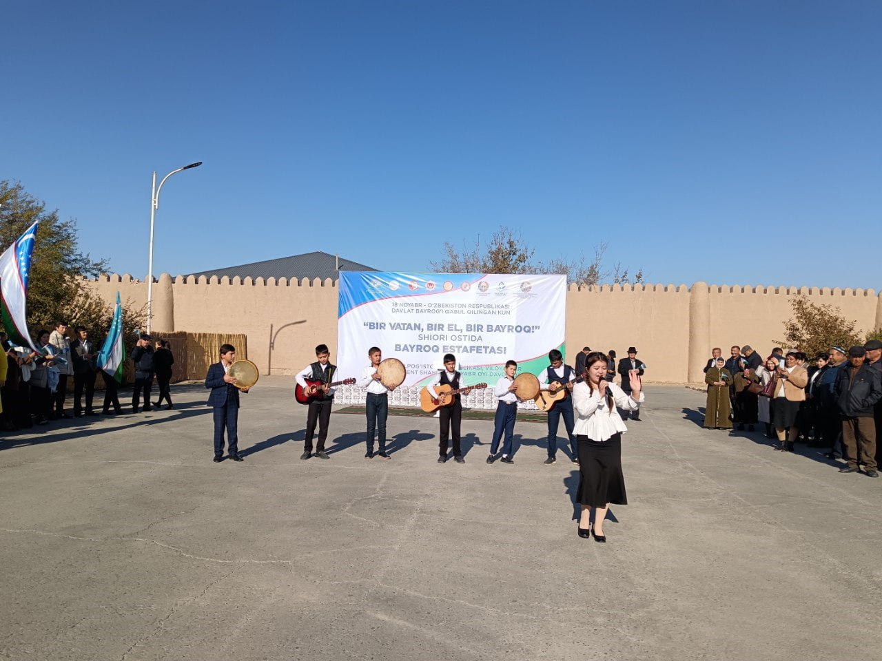 2025-yil 11-noyabr kuni Urganch tuman G‘oybu qishloq Turkmanlar mahallasida joylashgan "Ulli hovli" majmuasida Urganch tuman hokimligi bilan hamkorlikda 18-noyabr O‘zbekiston Respublikasi Davlat bayrog‘i qabul qilingan kuniga bag‘ishlab "BIR VATAN, BIR EL, BIR BAYROQ!" shiori ostida bayroq estafetasi bo‘lib o‘tdi.Mazkur estafetada bizning Urganch tuman 18-son bolalar musiqa va san'at maktabi o‘qituvchi va o‘quvchilari faol ishtirok qilib kelishdi. Telegram👇👇👇👇