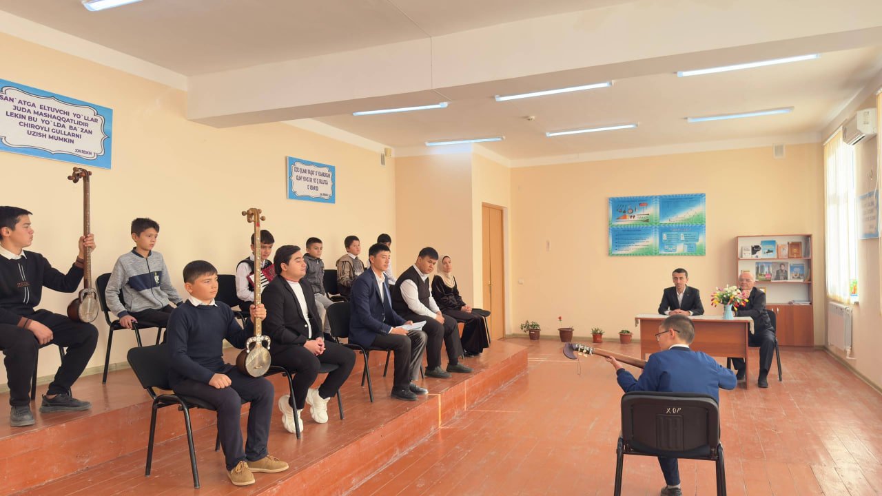 "Ijod maskani" 📆 2025-yil 29-noyabr kuni Urganch tuman 18-son bolalar musiqa va san'at maktabida O‘zbekiston Respublikasi Madaniyat vazirining 2025-yil 26-sentabrdagi 456-son buyrugʻi asosida “Ijod maskani" turkum tadbirlari va mahorat darslarini amalga oshirish boʻyicha Xalq cholg‘ular bo‘limi o‘qituvchi va o‘quvchilarining "Ijod maskani" shiori ostida sinf konserti bo‘lib o‘tdi.