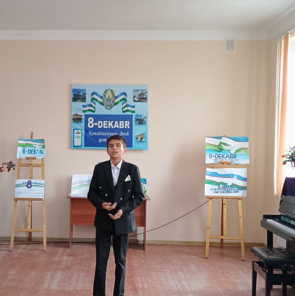 2025-yil 4-dekabr kuni Urganch tuman 18-son bolalar musiqa va san'at maktabida 8-dekabr O'zbekiston Respublikasi Konstitutsiyasi qabul qilingan kuniga bag'ishlab "Konstititsiya baxtimiz - qomusi" shiori ostida konsert dasturi o'tkazildi.Telegram