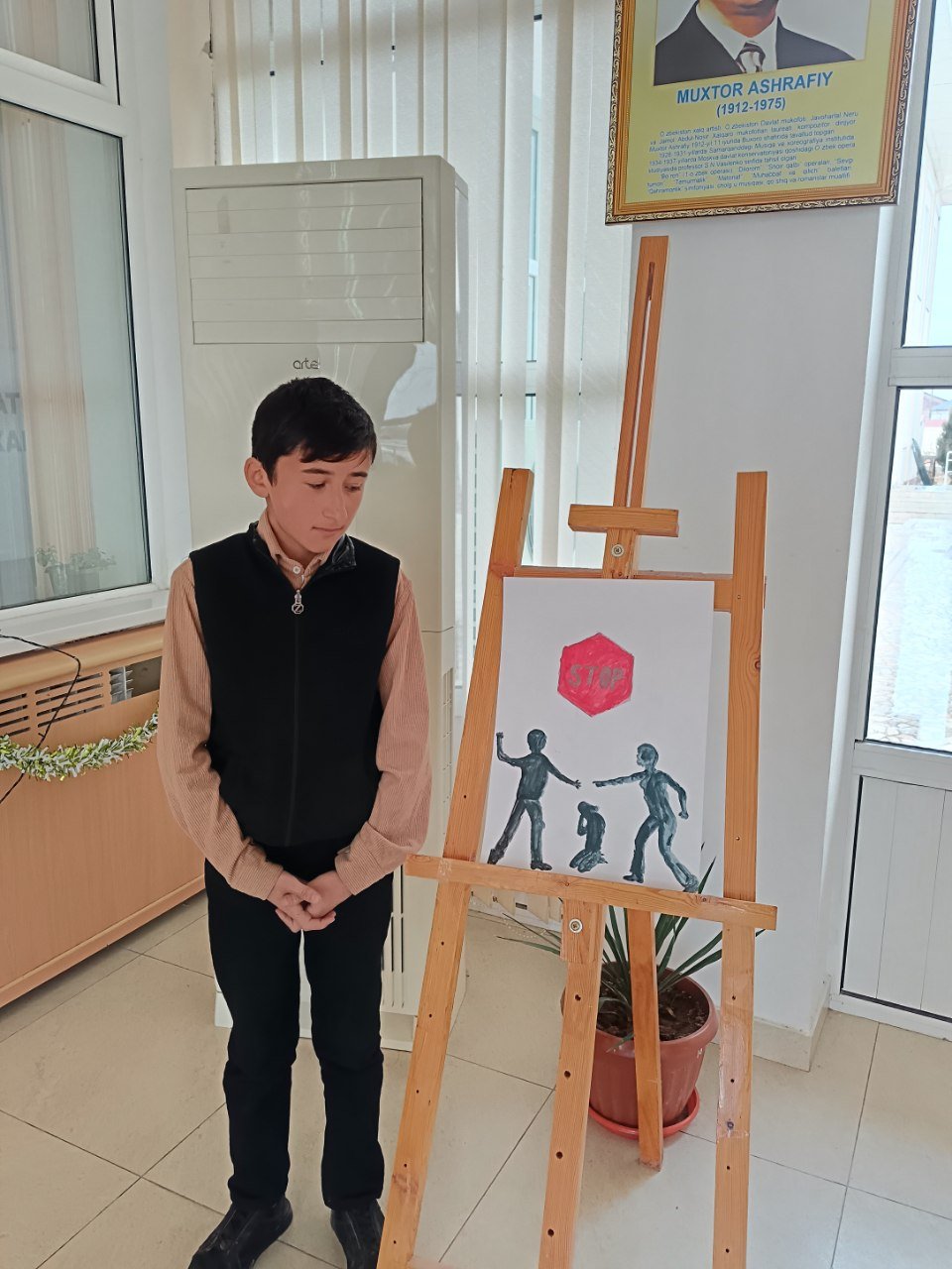 “Zo‘ravonlikka yo‘l yo‘q!” Xorazm viloyati Madaniyat boshqarmasining topshirig‘iga muvofiq, Urganch tuman18-son bolalar musiqa va san’at maktabida 10-dekabr kuni “Zo‘ravonlikka yo‘l yo‘q!” mavzusiga bag‘ishlangan ijodiy ko‘rgazma tashkil etildi.