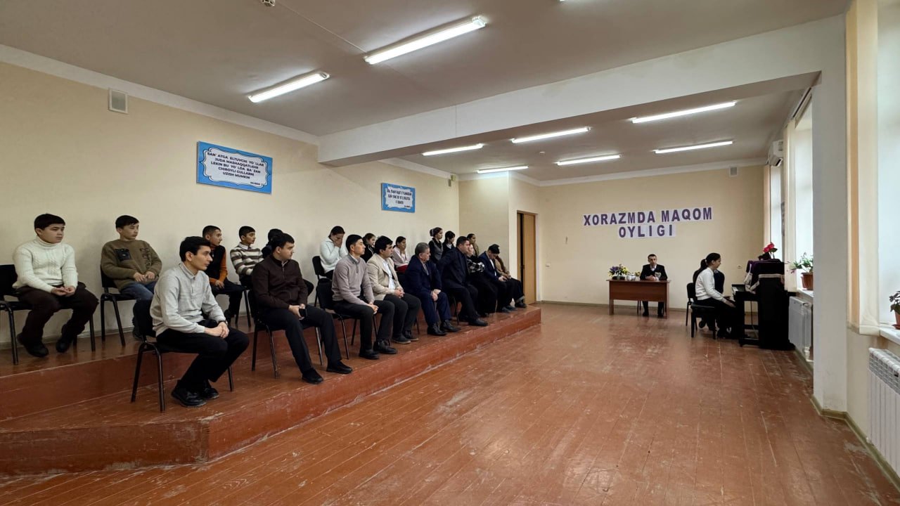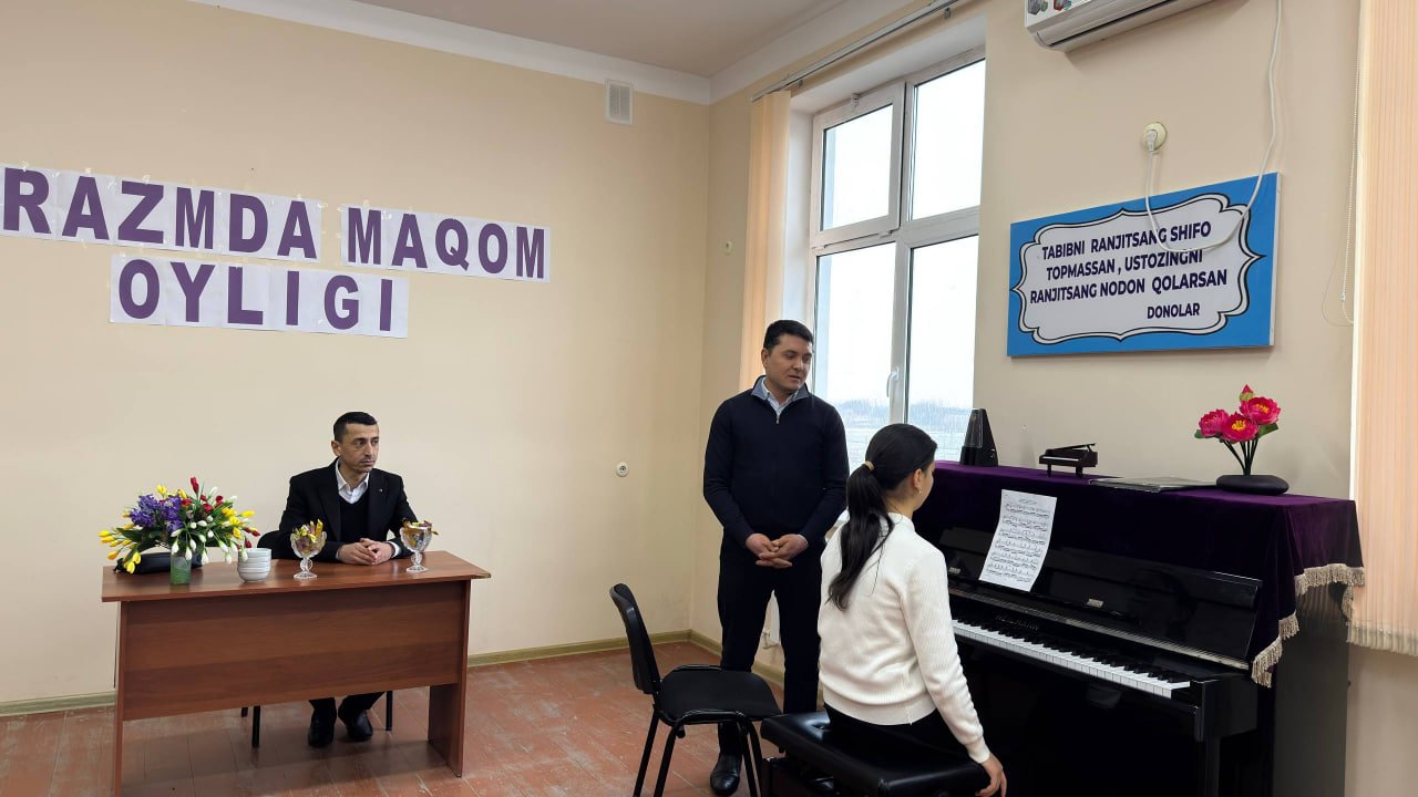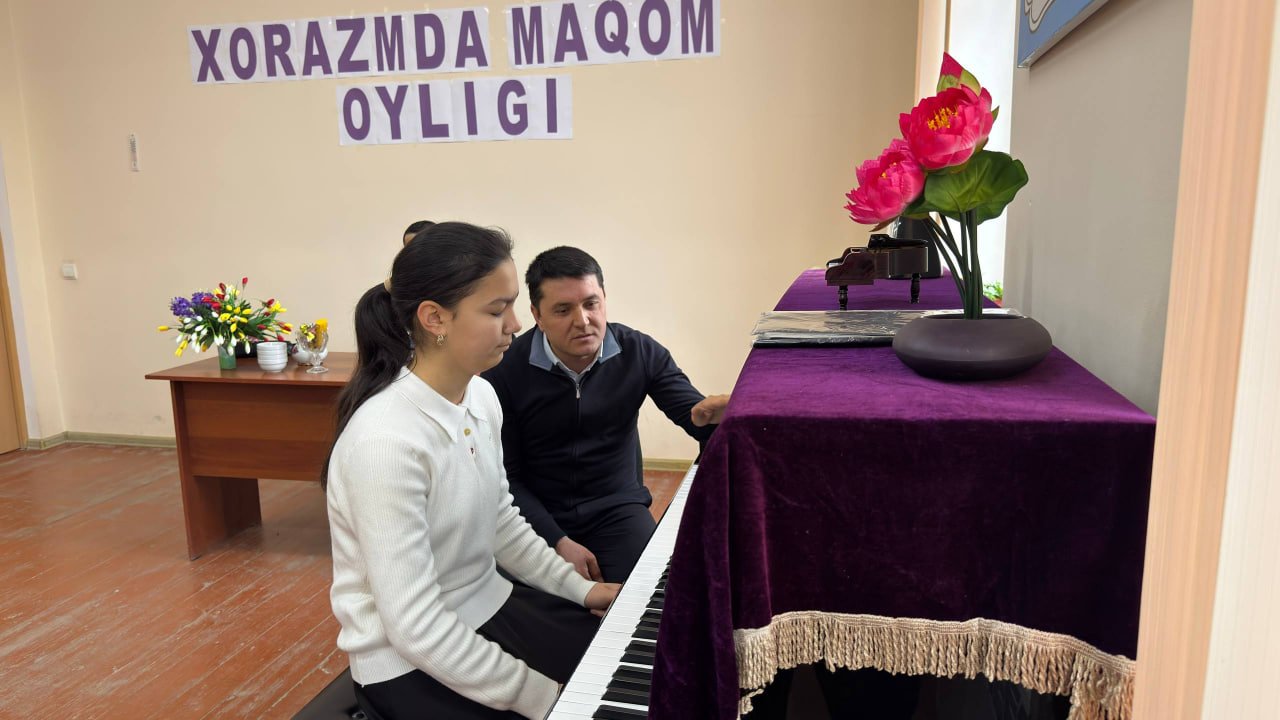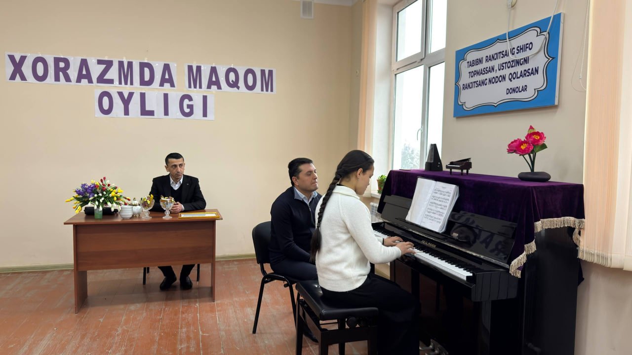 O‘zbekiston Respublikasi Madaniyat vazirining "Ijod maskani turkum tadbirlari hamda "mahorat darslari" ni o‘tkazish to‘g‘risidagi 2025-yil 26-sentabr kunidagi 456-son buyrug‘i hamda Xorazm viloyati Madaniyat boshqarmasi boshlig‘i G‘.Eshchanovning 15-yanvar kunidan 15-fevral kuniga qadar "Xorazmda maqom oyligi" o‘tkazish to‘g‘risidagi 2026-yil 14-yanvar kunidagi 2-son buyrug‘i ijrosini ta'minlash maqsadida 2026-yil 27-yanvar kuni Urganch ixtisoslashtirilgan san'at maktabi Fortepiano bo‘limi o‘qituvchisi Inoyatov Jo‘rabek Fortepiano yo‘nalishi bo‘yicha mahorat dars o‘tkazib berdi. Telegram👇👇👇👇