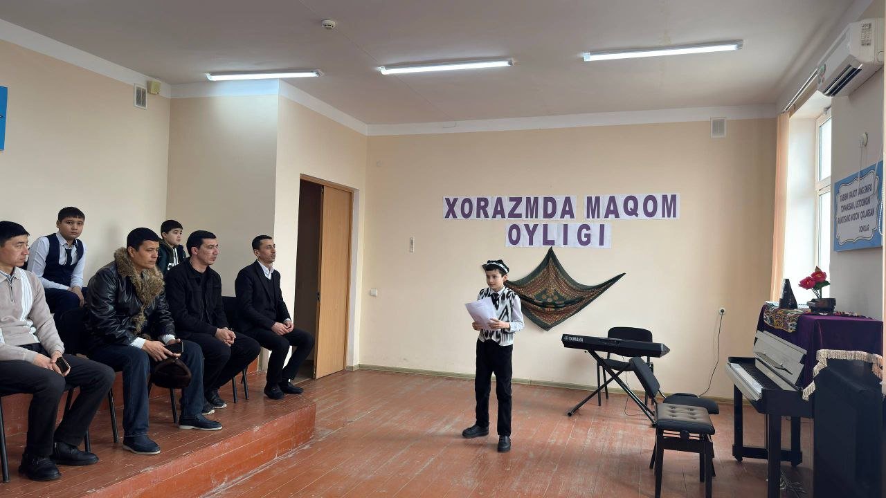 "Ijod maskani" "Xorazmda maqom oyligi" O‘zbekiston Respublikasi Madaniyat vazirining "Ijod maskani turkum tadbirlari hamda "mahorat darslari" ni o‘tkazish to‘g‘risidagi 2025-yil 26-sentabr kunidagi 456-son buyrug‘i hamda Xorazm viloyati Madaniyat boshqarmasi boshlig‘i G‘.Eshchanovning 15-yanvar kunidan 15-fevral kuniga qadar "Xorazmda maqom oyligi" o‘tkazish to‘g‘risidagi 2026-yil 14-yanvar kunidagi 2-son buyrug‘i ijrosini ta'minlash maqsadida 2026-yil 3-fevral kuni Urganch tuman 18-son bolalar musiqa va san'at maktabi Fortepiano va Torli va kamonli cholg'ular bo‘limi o‘qituvchi va o‘quvchilarining "Torlar va klavishlar sadosi" deb nomlangan sinf konserti bo‘lib o‘tdi.Telegram